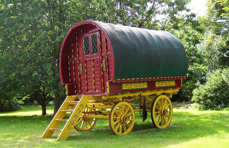 Barrel Top Wagons are now a symbol of Traveller Culture. Traveller men used to make their own wagons; the wagon was made of timber and carved for decoration. The engravings were individual designs and the wagon was painted in primrose yellow and maroon red. The roof of the wagon was made with timber bows and covered with a green canvas. The wheels were covered with iron bands and underneath the body of the wagon was a big brass stock. The wagons were drawn by horses, the families used often walk alongside the wagon so the horse wouldn’t tire.